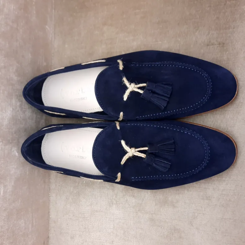 Moccasin in blue suede.