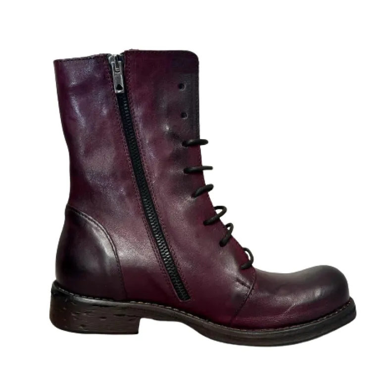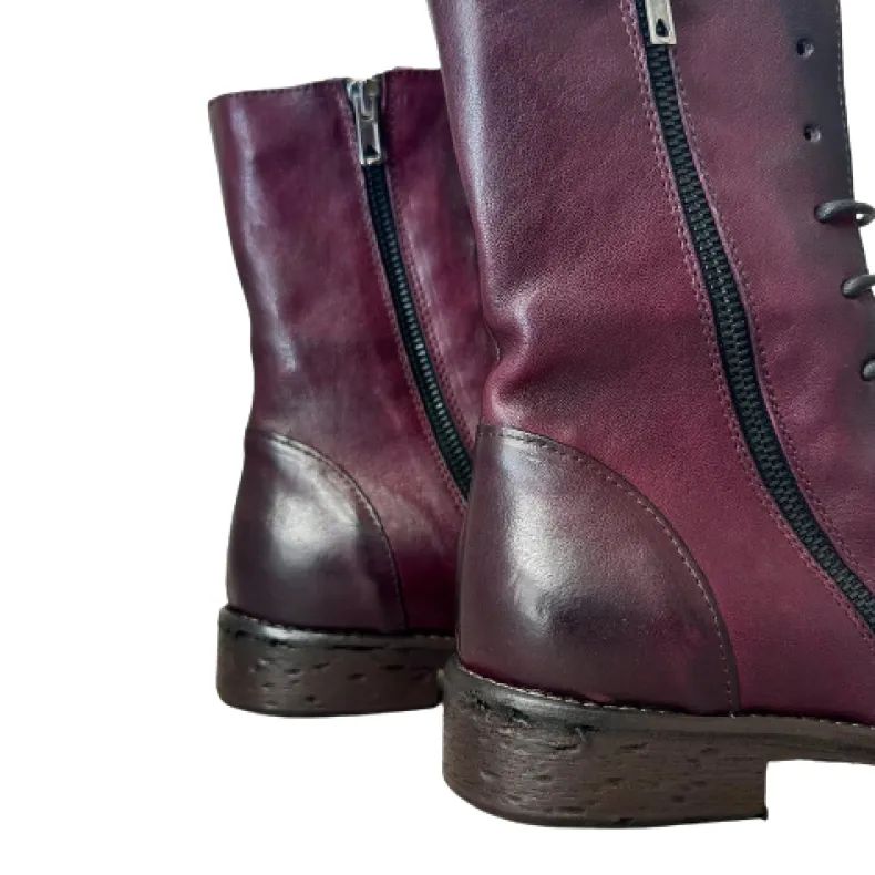 Lace-up model with two real side zips that make it possible to put it on without having to fasten it every time.