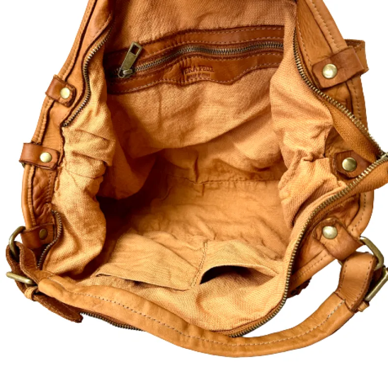 Fine full grain vegetable tanned and washed leather. This allows to give the leather the characteristic of a vintage leather and at the same time to enhance its colors and shades to the maximum.