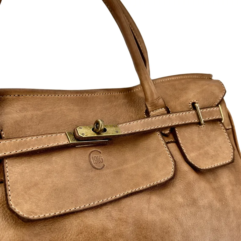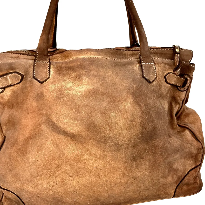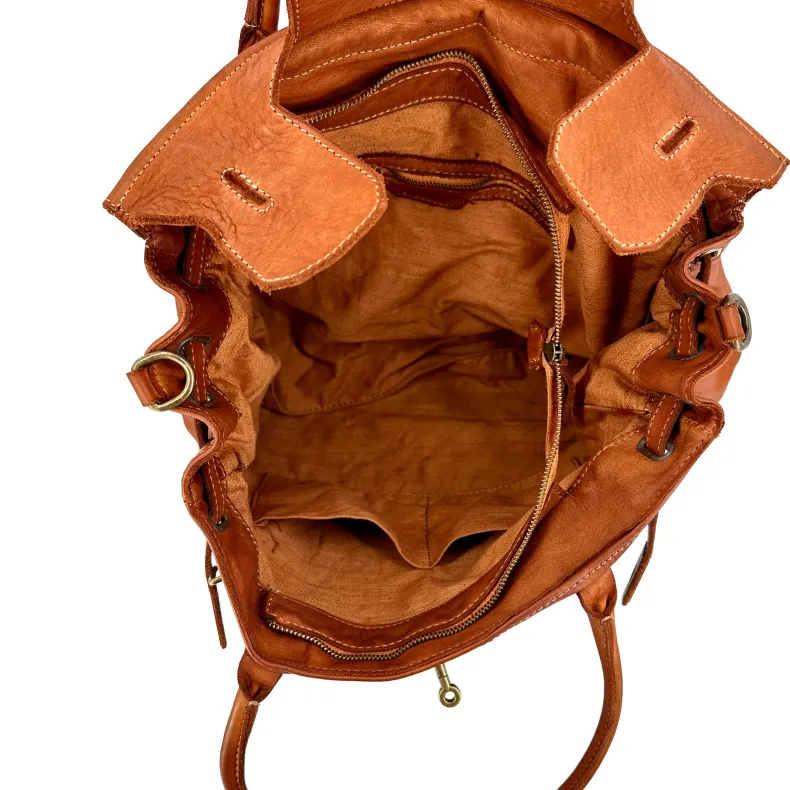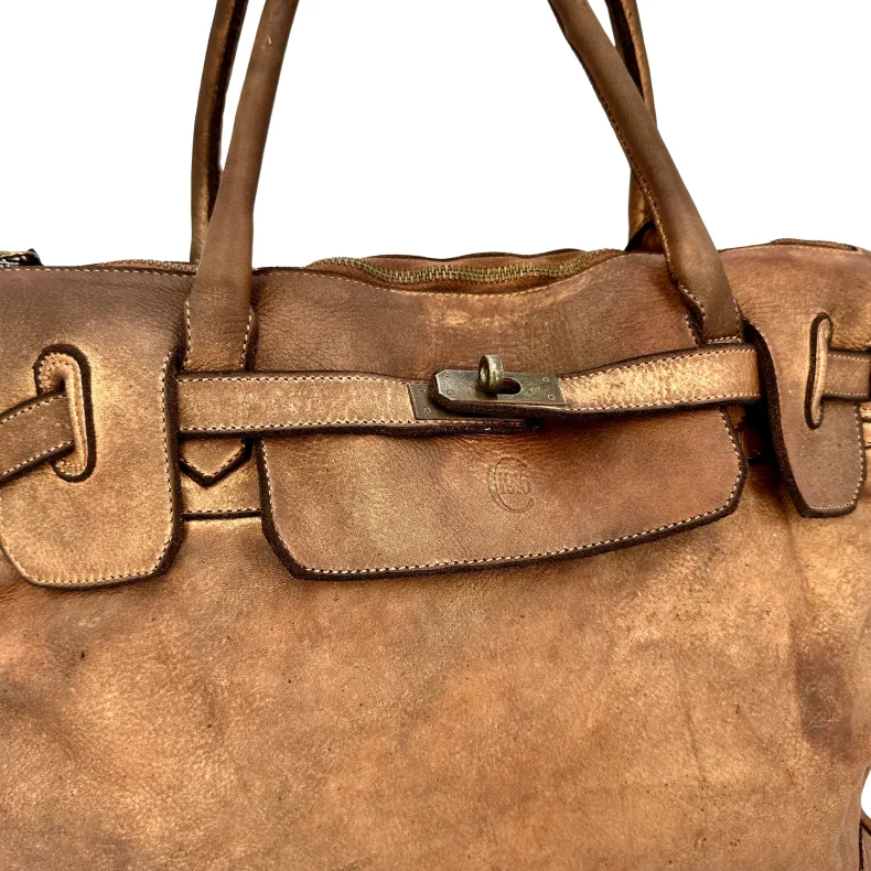 Fine full grain vegetable tanned and washed leather. This allows to give the leather the characteristic of a vintage leather and at the same time to enhance its colors and shades to the maximum.