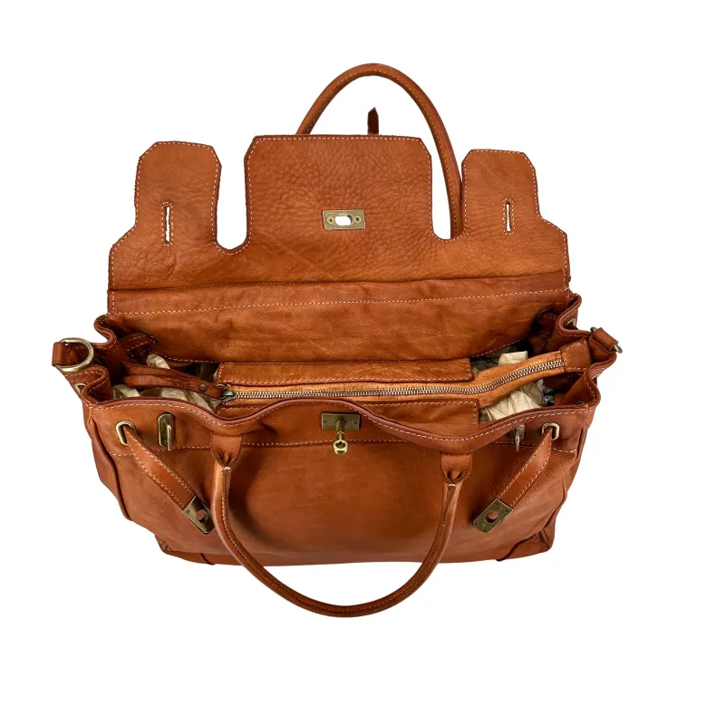 Entirely handcrafted leather bag.