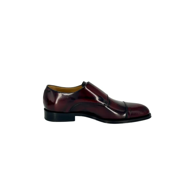 Double buckle entirely handcrafted in burgundy abraded leather.