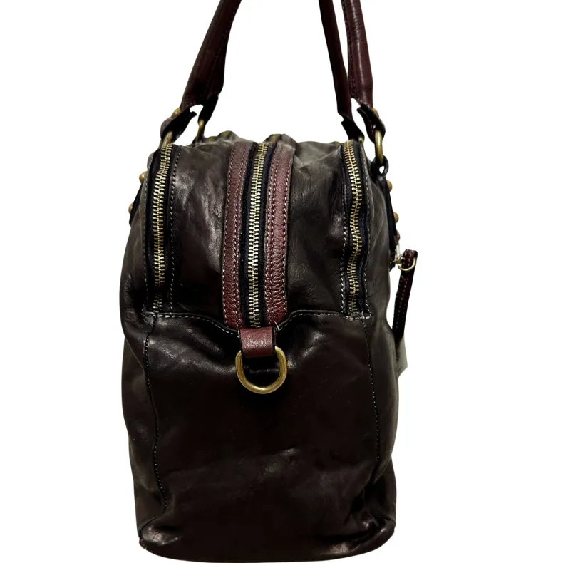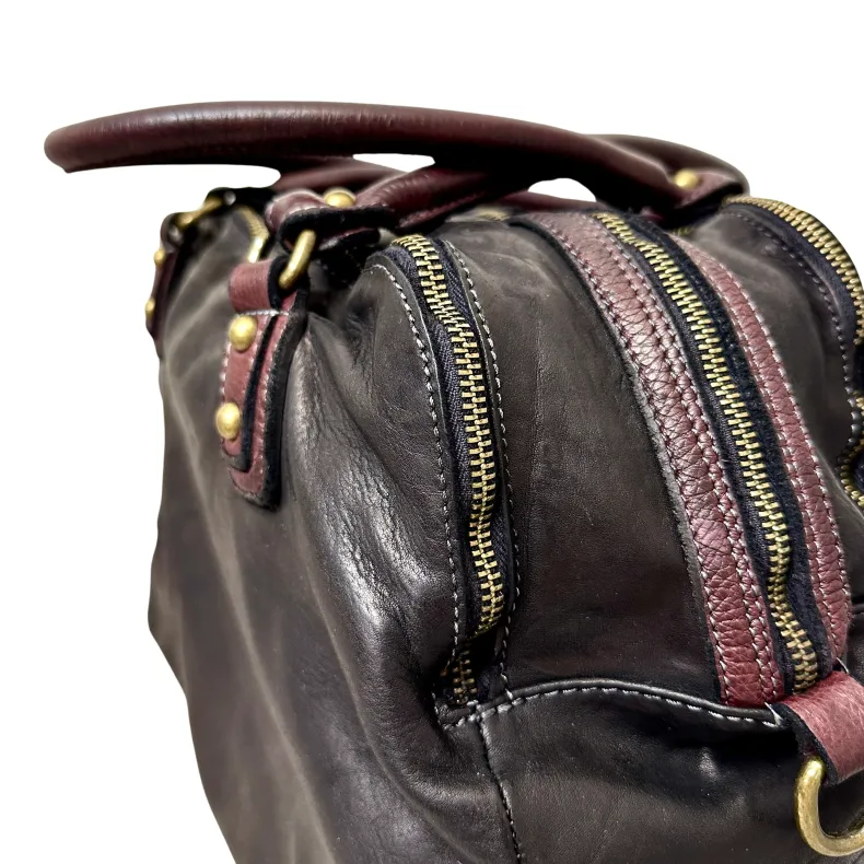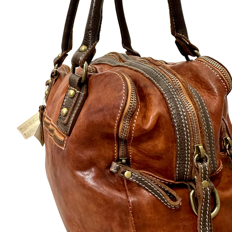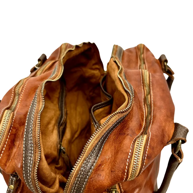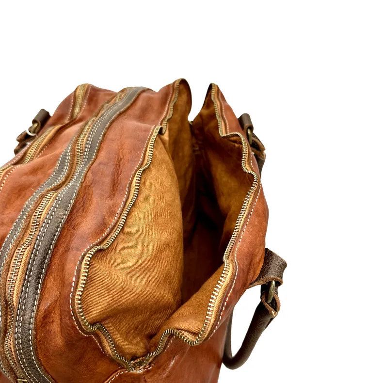 Fine full grain vegetable tanned and washed leather. This allows to give the leather the characteristic of a vintage leather and at the same time to enhance its colors and shades to the maximum.