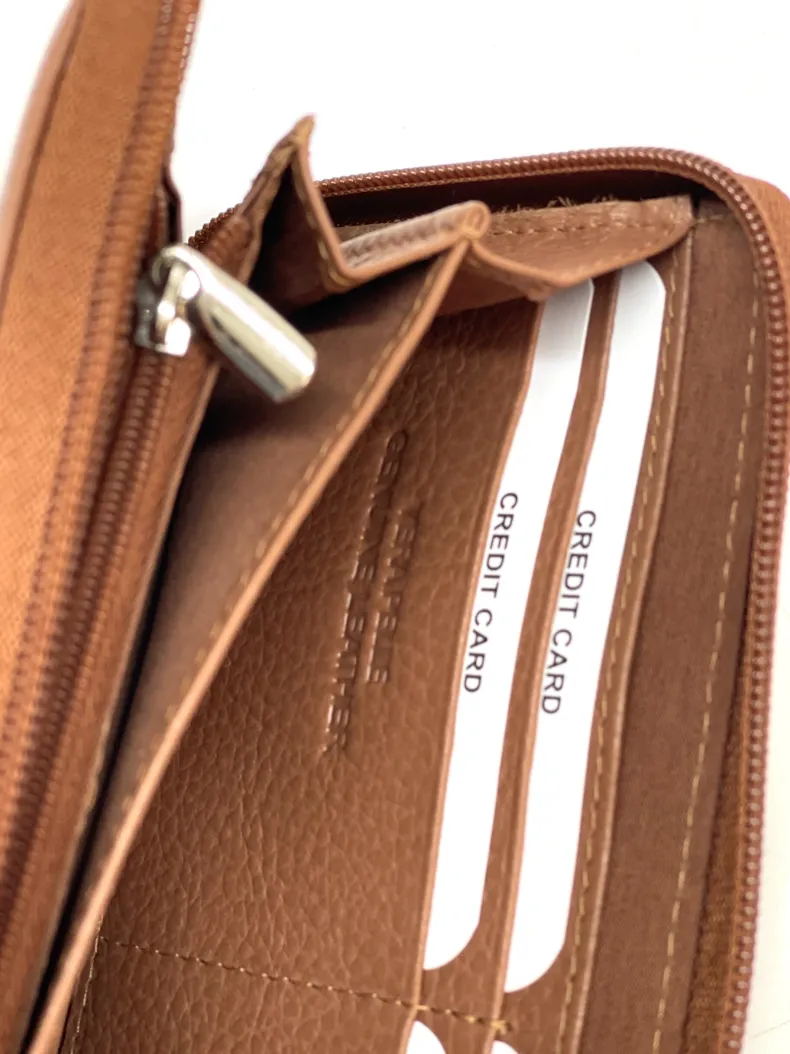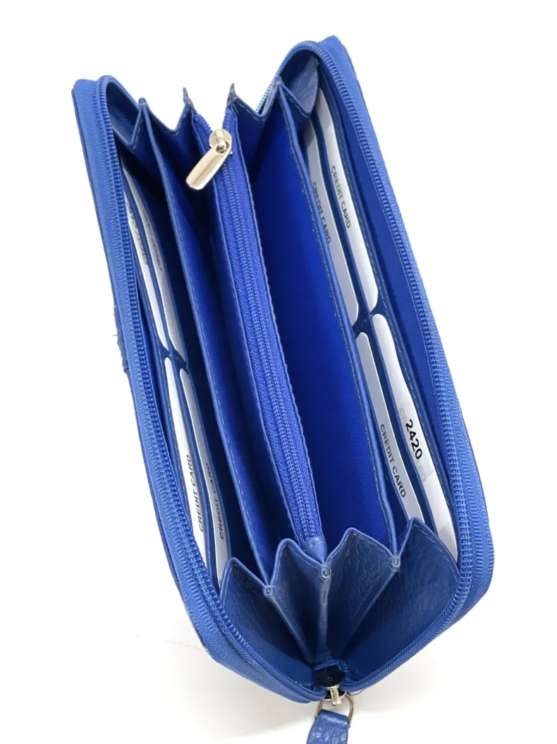 Equipped with: 8 card/credit card holder spaces, 2 banknote pockets, 1 coin pocket closed by zip, 2 other spaces, 4 banknote spaces.
