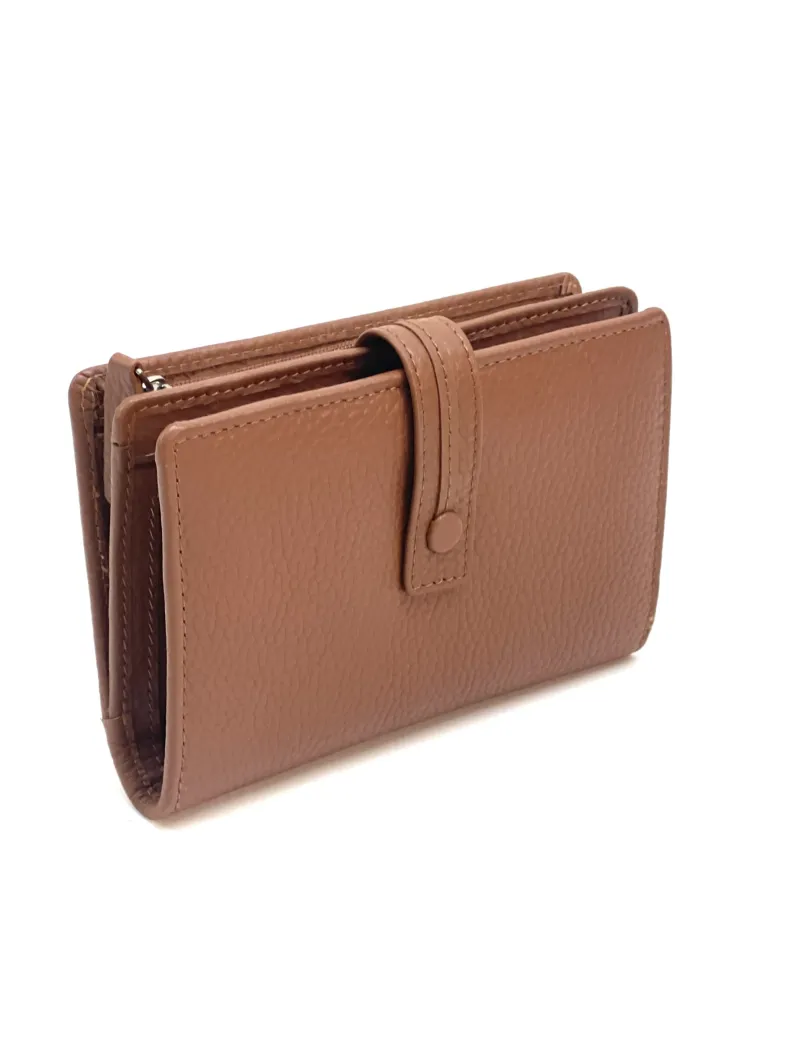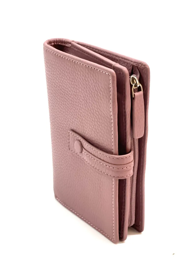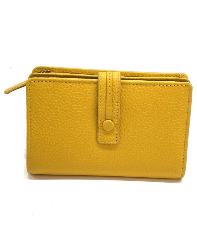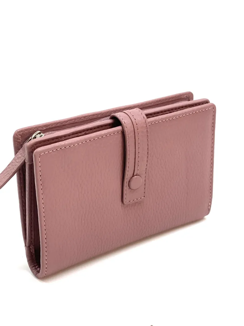 Part with button equipped with: 9 card/credit card holder spaces, 1 banknote holder space, 1 zippered pocket, 1 transparent document holder space.