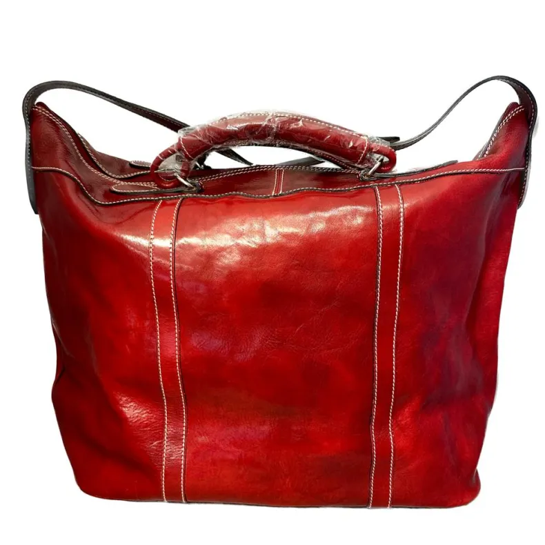 Handcrafted travel bag in top quality leather.