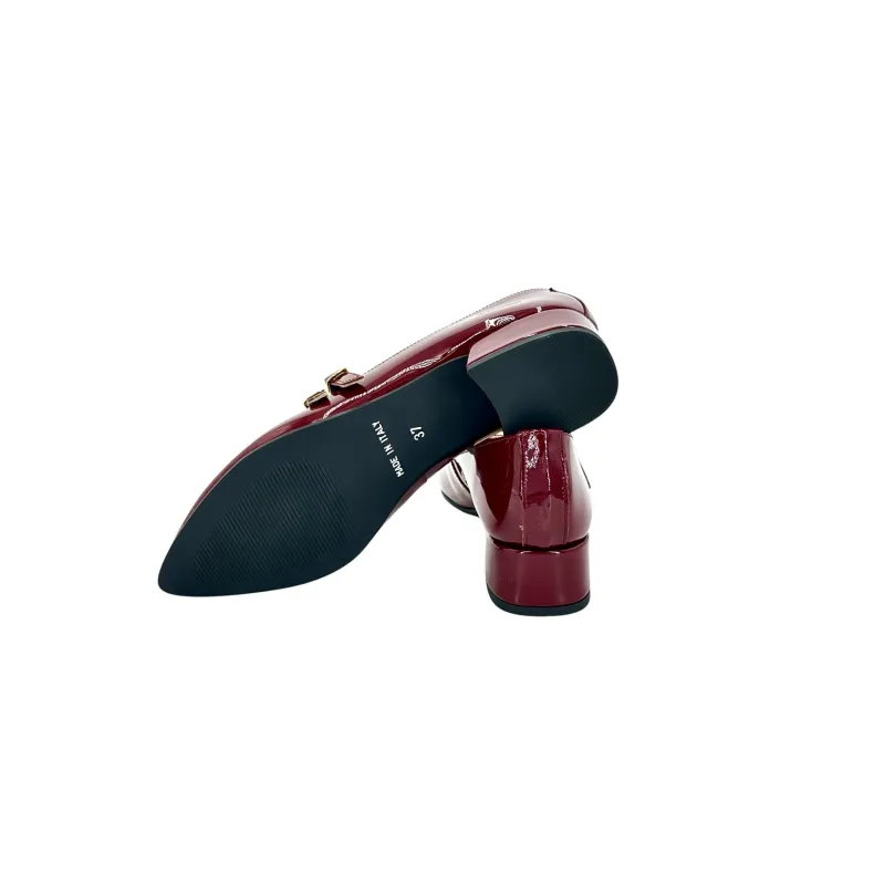 Heel covered in burgundy patent leather: approx. 3 cm.