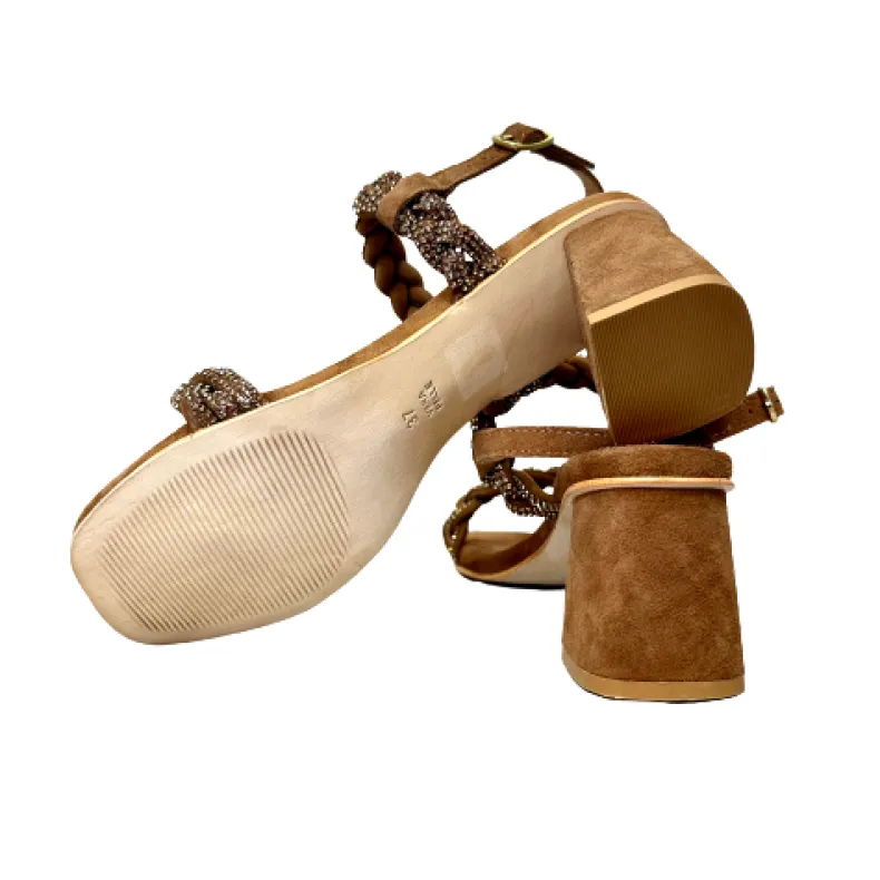 Handcrafted suede sandal with jewels.