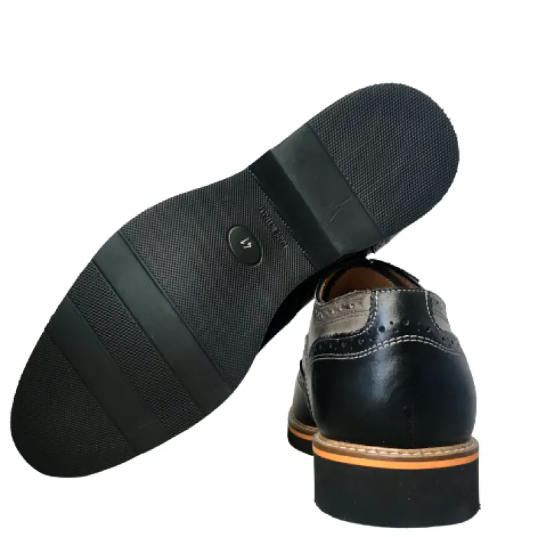 With removable memory foam insole covered in leather that makes the shoe very comfortable.