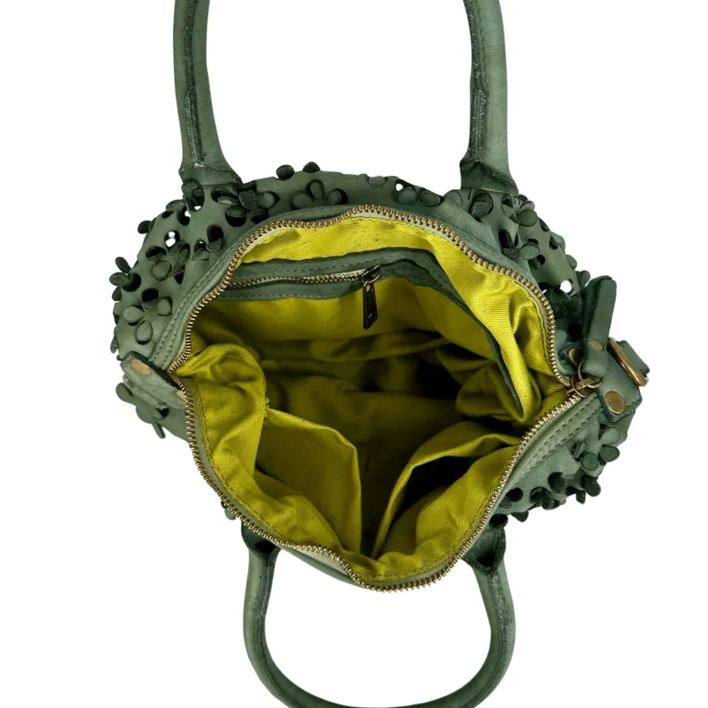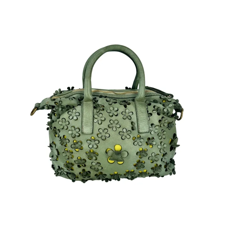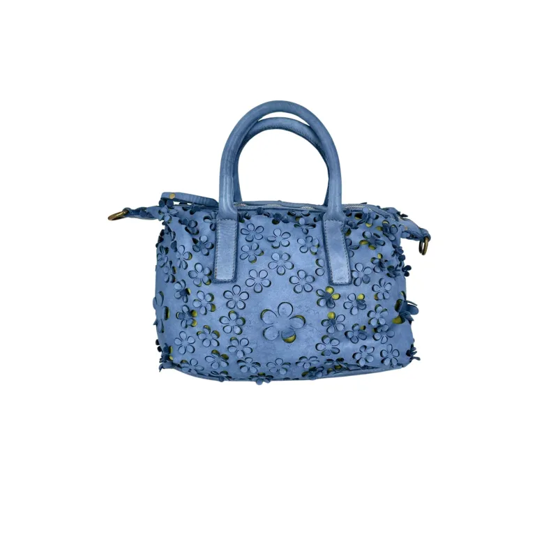 Lillà medium: Boston bag with lasered leather flowers on both the front and the back.
