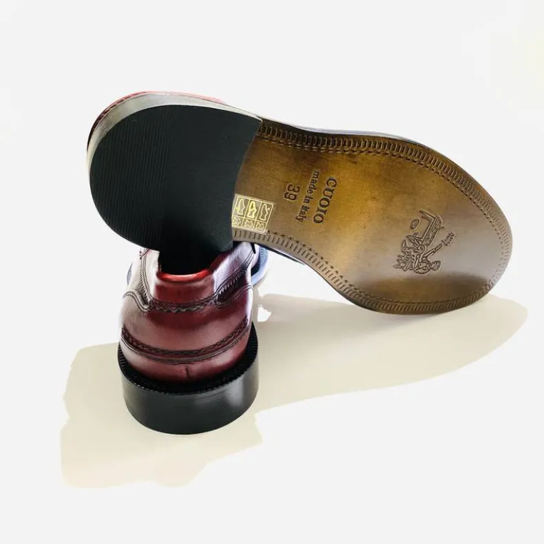 Red leather moccasin, College model with leather sole.