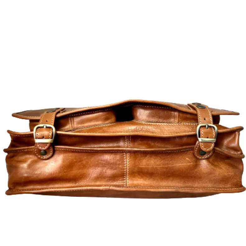 Two compartments: one of which has an open leather pocket, three leather pen holders and three leather card holders; in the other we find a large pocket closed by a zipper.
