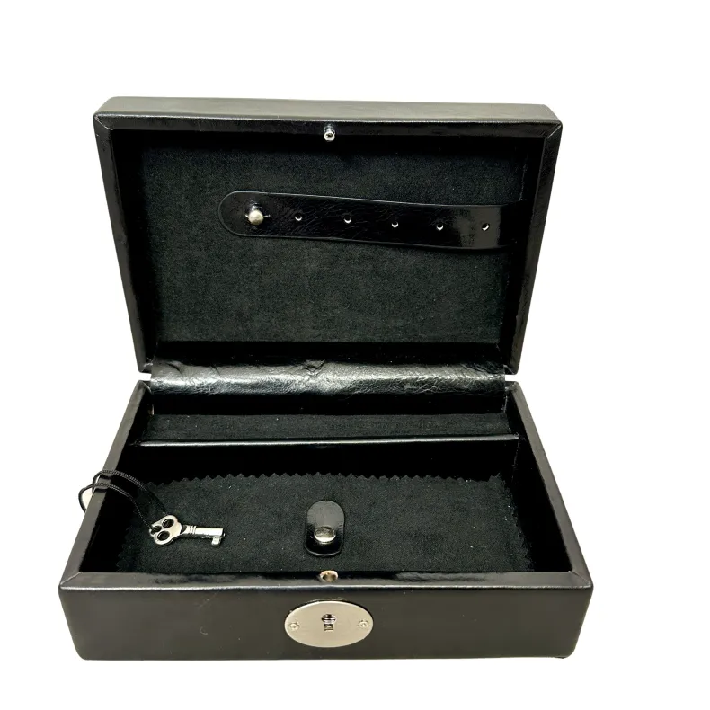 Handcrafted jewelry box in full grain vegetable tanned and hand buffered leather.
