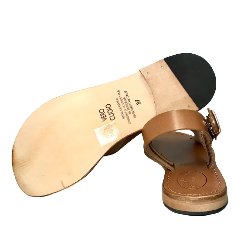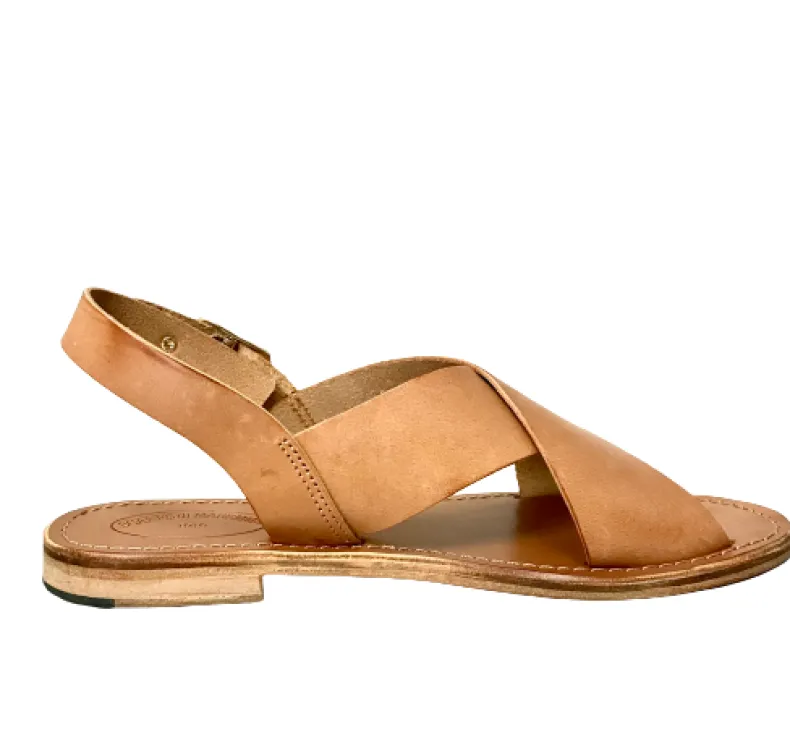 Handmade sandal in burnt leather.