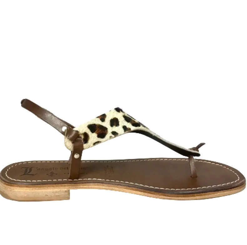Handmade leopard pony skin sandal on the band.