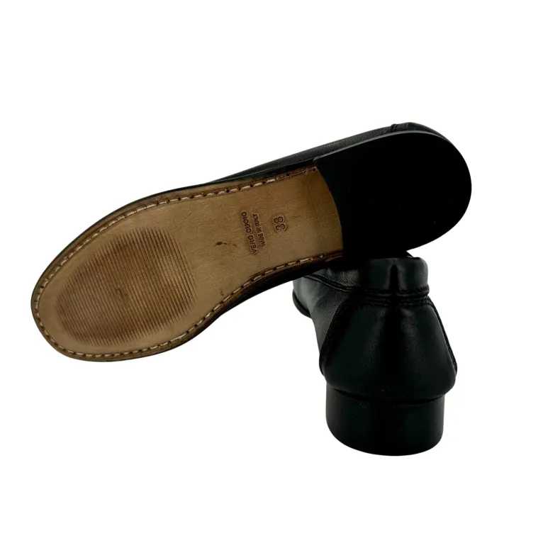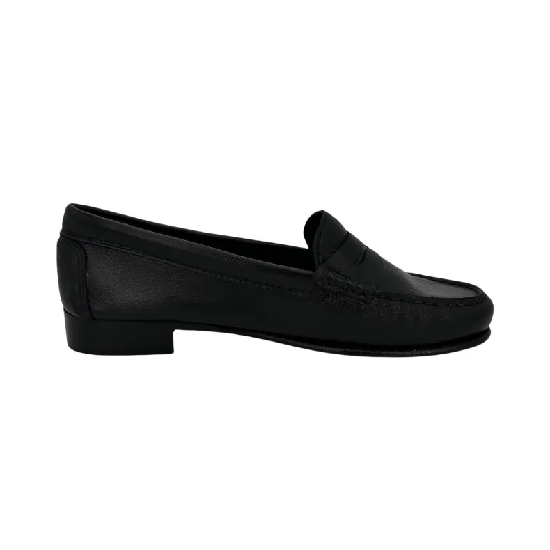 Black calfskin moccasin.