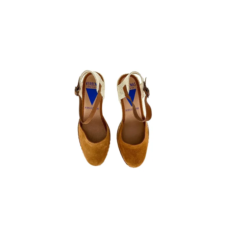 Summer wedge in leather suede, espadrilles model closed at the toe with ankle fastening.